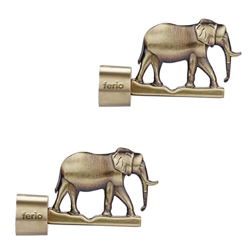 FERIO Elephant Design Zinc Alloy Curtain Bracket/Holder for Door and Window 1 Inch Rod Size Brass Antique Finish Set (Pack of 2) | INVALID DATA