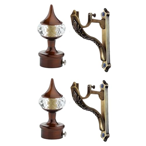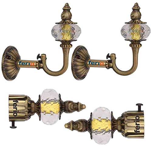 FERIO Zinc with Crystal Diamond Curtain Holders Brackets with Support for Door and Window Fitting for 1 Inch Pocket Finials Designer (Curtain Rod Holder 2 Pcs and Curtain Bracket 2 Pcs)