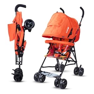 LuvLap Tutti Fruti Baby Stroller/Buggy, Lightweight, Compact & Travel Friendly Baby Pram for 6-36 Months, 5 Point Safety Harness, Adjustable seat Recline, Extendable Canopy, Upto 15Kg (Orange)