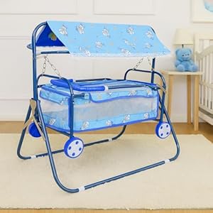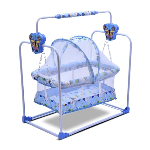 Iron Baby Cradle For New Born Kids Mosquito Net .Multiuse Kids Palna Jhula For Comfortable Sleep And Foldable Design Safe Baby Swing Baggi For 0-2 Years .Blue Colour For Boys And Girls