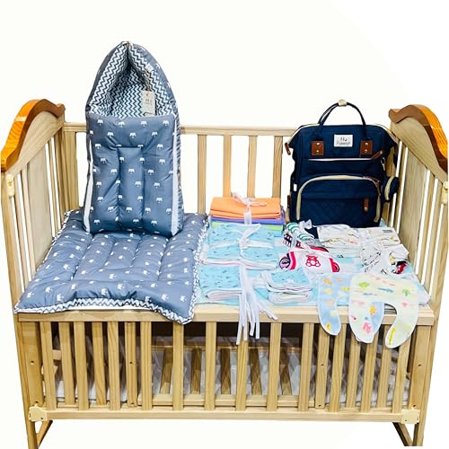 Infantbond Infantbond Baby Products All New Born Combo | Baby Combo Set for New Born | 54 in 1 Hospital Essentials Kit | Baby Essentials for Newborn (Summer Essentials)(0-6 Months)(Grey Crown)