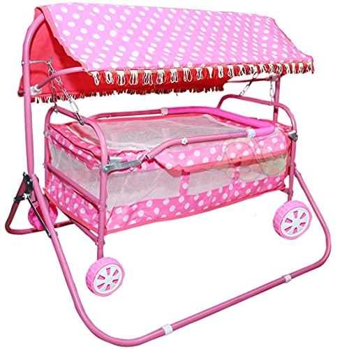 Baby Cradle for Newborn Babies with Deluxe Comfortable Kids jhula palna Swing with Foldable Design with Canopy for 0 to 2 Years .Pink Colour baggi for Boys and Girls (Baby Pink)