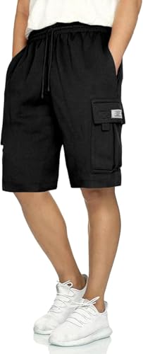 Q – RIOUS Mens Casual Sweat Cargo Cotton Shorts Drawstring Elastic Waist Athletic Workout Gym Jogger Shorts with 5 Pockets