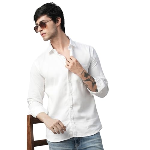 TB Trybuy.in White Linen Cotton Casual Full Sleeves Breathable Trending Shirt for Men | High Comfort | Soft | Breathable | All Day Long Wear