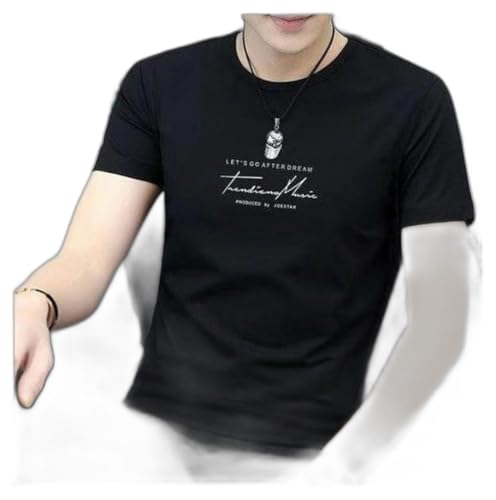 LEOTUDE Half Sleeve Oversized Tshirt for Men, Round Neck Cottonblend Drop Shoulder Printed T-Shirt (Black Color)