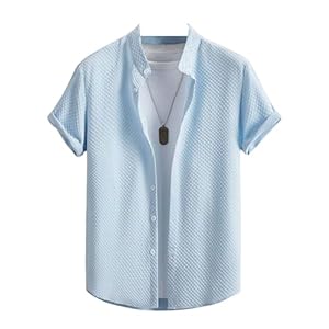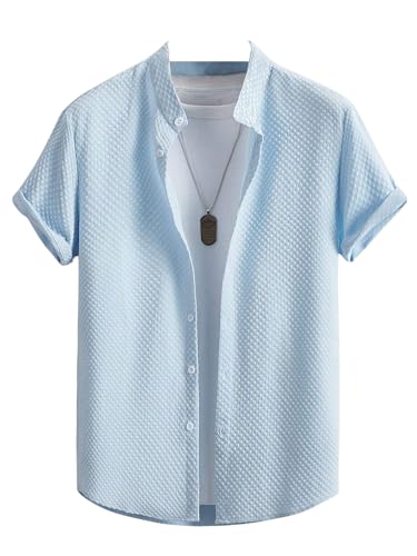 Men’s Casual Button Down Shirts Long Sleeve Cotton Bland Shirt Fashion Textured Beach Summer Shirt