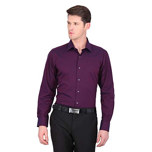 Pinkmint Men Cotton Soild Spread Collar Long Sleeve Shirt Formal Wear Purple