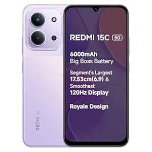 REDMI 15C 5G Dusk Purple 8GB + 128GB | Royale Design | Massive 6000mAh Battery | Segment’s Largest 17.53cm Display Up to 120Hz | MediaTek Dimensity 6300 | 33W Fast Charging | 50MP AI Dual Camera