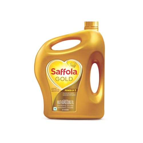 Saffola Gold Refined Cooking oil | Power of 3 – Balance of Good Fats, Triple Anti-Oxidant System & Fortified with Vitamins | Multi-Source Edible Rice Bran & Sunflower Oil | 3.64kg Jar