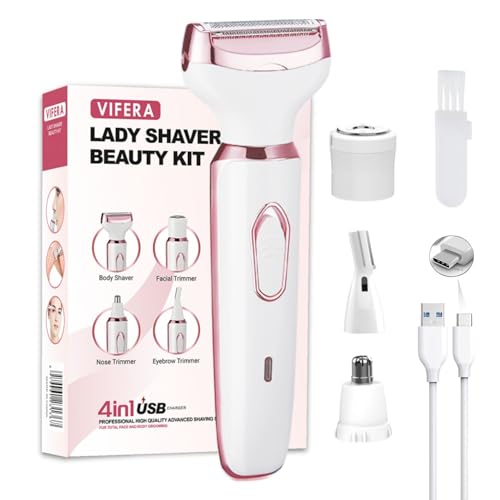 VIFERA 6-in-1 Trimmer for Women – Facial Hair Removal Machine, Bikini Trimmer, Eyebrow & Nose Hair Trimmer – Painless Body Hair Trimmer for Women – Type-C, 90 Min, Waterproof (White)