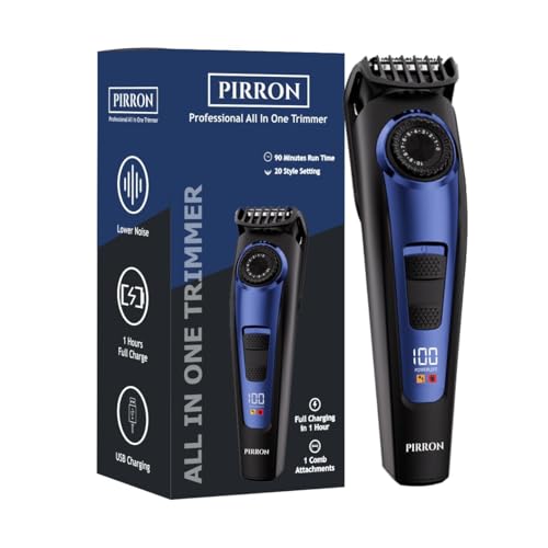 Electric Beard Trimmer for Men Professional Adjustable Length and Hair Clipper, Men’s Beard Mustache Trimming and Body Hair Trimmer, Cordless LED Digital Display , 140 min Running Time Rechargeable Type C (Blue)
