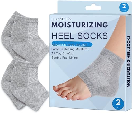Purastep Silicone Gel Heel Socks For Dry Hard Cracked Heels Repair, Foot Care Support Cushion With Spa Botanical Gel Pad – For Men And Women – (Free Size) (1 Pair) (Grey)