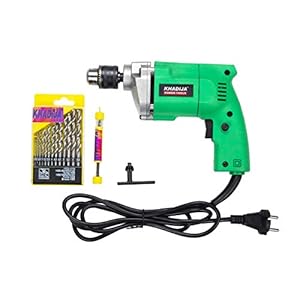 KHADIJA Drill Machine 10mm With Free 13Pcs HSS Drill Bits & 1Pc Masonary Bit Combo 6 Months Warranty