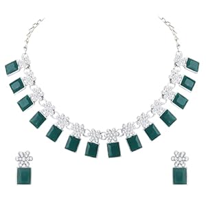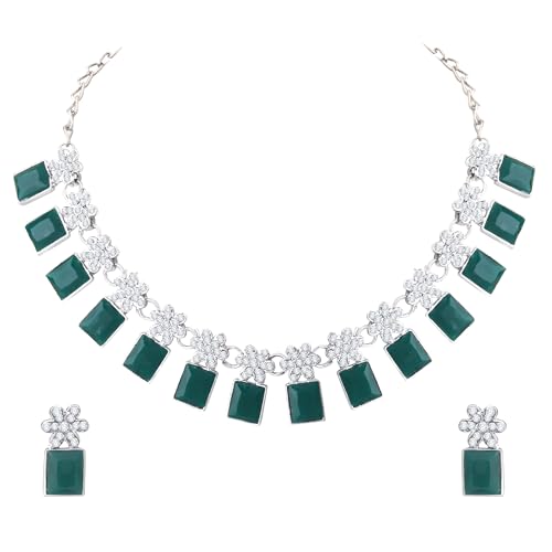 Atasi International Silver Plated Crystals American Diamonds Alloy Necklace Set with Earrings for Women | Stylish Jewellery for Party, Wedding, and Festive Occasions