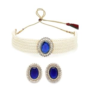 Sukkhi Eye-Catchy Gold Plated with Multi String Faux Pearls Choker Necklace with Studs Earring Jewellery Set for Women & Girls