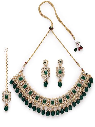 Sukkhi Shostopper exalted Green Traditional Floral Necklace Set with Earrings + Maang Tikka for Women