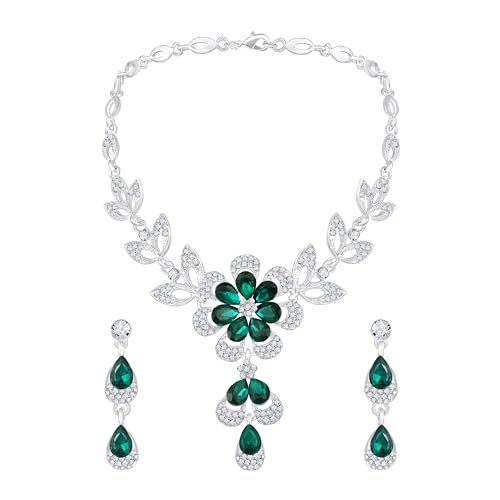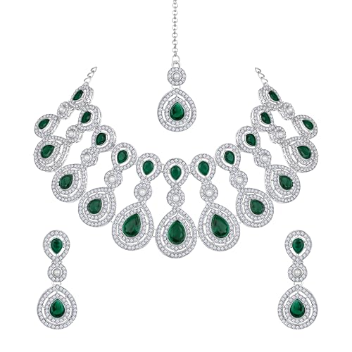 Atasi International Silver Plated Crystal Necklace Earrings Set for Women & Girls – Wedding & Festive