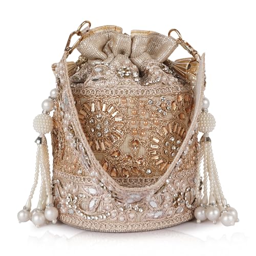 Kuber Industries Silk Embroidered Women Potli Bag (Cream) -CTKTC8803
