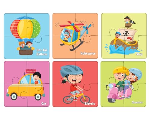 Set of 6 Wooden Transport Jigsaw Puzzles for Kids – 4-Piece Each, Montessori Educational Learning Toys for Toddlers & Preschoolers, Safe & Durable
