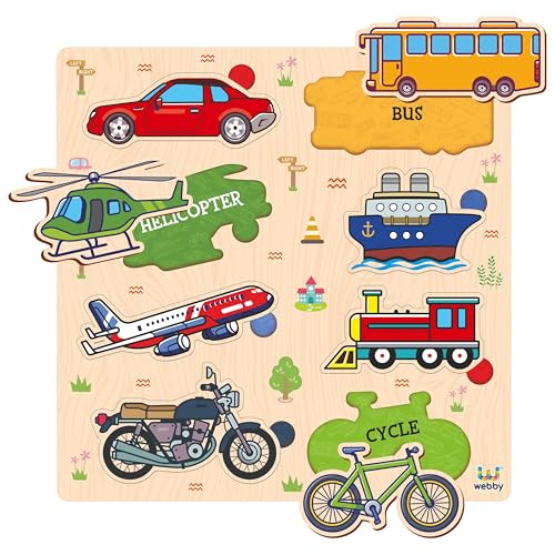 Webby Public Transport Vehicles Wooden Learning Puzzle | Educational Montessori Toy for Pre School Kids