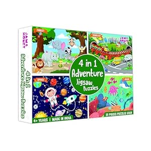 Amazon Brand – Jam & Honey 4 in 1 Adventure – Puzzles for Kids | 35-Piece Puzzles | Educational Toy for Cognitive Development | Vibrant Colors