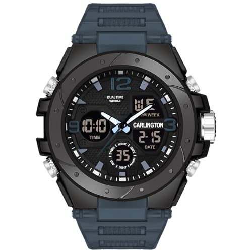 Carlington Endurance Series Analog-Digital Sports Watches for Men and Boys with Alarm, Stopwatch, Backlit Display, Dualtime, Silicone Rubber Strap, Water & Shock Resiatant – CT_9105