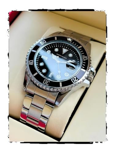 Analog Watch Men’s Dive-Style Watch – Stainless Steel Bracelet, Rotating Black Bezel