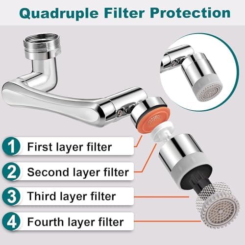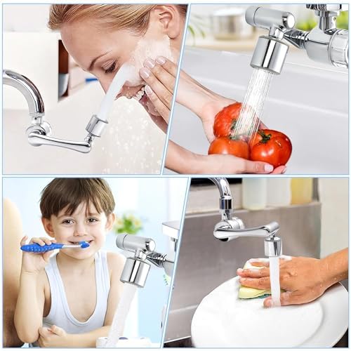 1080° Rotating Swivel Faucet Tap Extension 2 Modes Water Faucet, Adjustable Head Nozzle Adapter Splash-Proof Hose Aerator Filter Extender Sprayer for Kitchen, Bathroom,