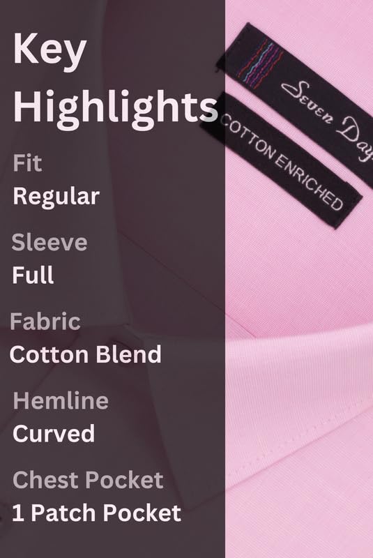 7-DAYS Men’s Premium Formal Shirt – Cotton Blend, Regular Fit, Full Sleeve, with Pocket, Durable & Easy Care – Perfect for Office Wear