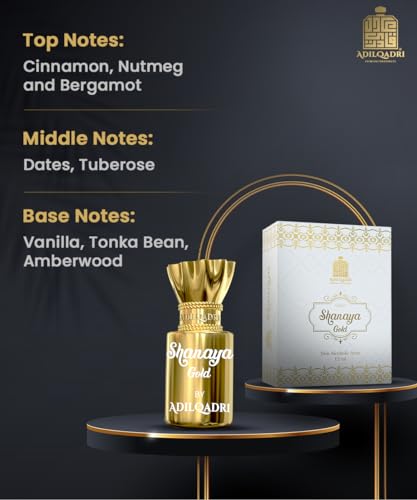 Adilqadri Shanaya Gold Attar for Men & Women | Arabic Non-Alcoholic Perfume Attar | Warm Vanilla, Spicy & Floral Fragrance | Gift for Him & Her | 5.5ML Roll-On