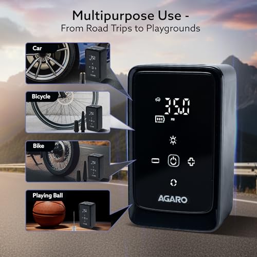 AGARO Atom Cordless Tyre Inflator, 150 PSI, 4500mAh Battery, Auto Shut-Off, Digital Display, LED Light, USB-C Charging, 12V DC Output, for Cars, Bikes, Balls & Inflatables