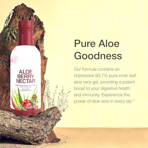 Refresh and nourish your body with Aloe Berry Nectar, made from 90.7% pure aloe vera gel combined with the natural goodness of cranberries and apples. This delicious and healthy drink contains no added preservatives, offering you a pure and revitalizing beverage that supports digestion, hydration, and overall wellness. Enjoy the subtle sweetness and antioxidant-rich benefits of this unique blend, perfect for daily consumption as part of a balanced lifestyle.