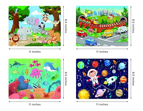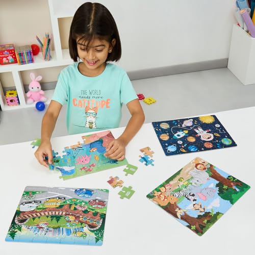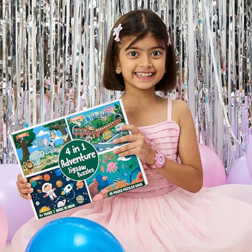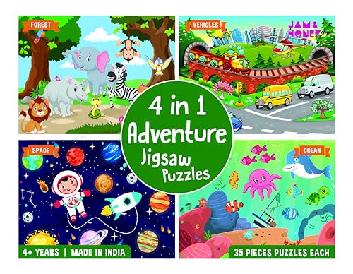 Amazon Brand – Jam & Honey 4 in 1 Adventure – Puzzles for Kids | 35-Piece Puzzles | Educational Toy for Cognitive Development | Vibrant Colors
