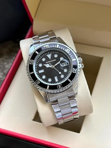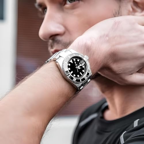 Analog Watch Men’s Dive-Style Watch – Stainless Steel Bracelet, Rotating Black Bezel