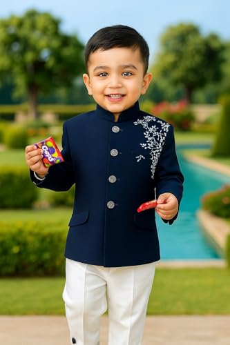 Dress your little prince in this adorable and elegant traditional baby boy sherwani set – a perfect blend of comfort and ethnic charm. This kids ethnic jacket set features a rich navy blue art silk Nehru-style jacket with beautiful embroidery on the shoulder and a classic white cotton pant for a graceful festive look. This kids kurta pant set is perfect for baby boys aged 1 to 8 years with multiple size options. Whether you’re looking for a sherwani for boys for weddings, a 2 year baby dress for wedding, or a traditional dress for boys for Diwali, this outfit is a great choice. Designed to be gentle on baby skin, this sherwani for baby boy is both fashionable and comfortable. Ideal for festive events, cultural functions, naming ceremonies, and photo shoots, it blends style with practicality. If you’re searching online for baby boy wedding dress, kurta kids boys, or kids sherwani for boys, this outfit is exactly what you need.