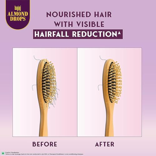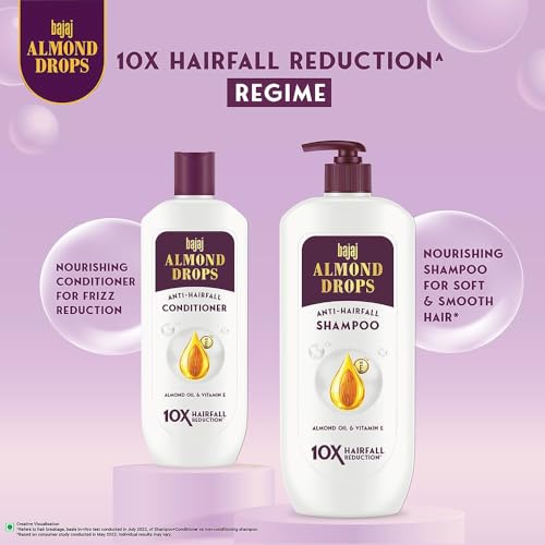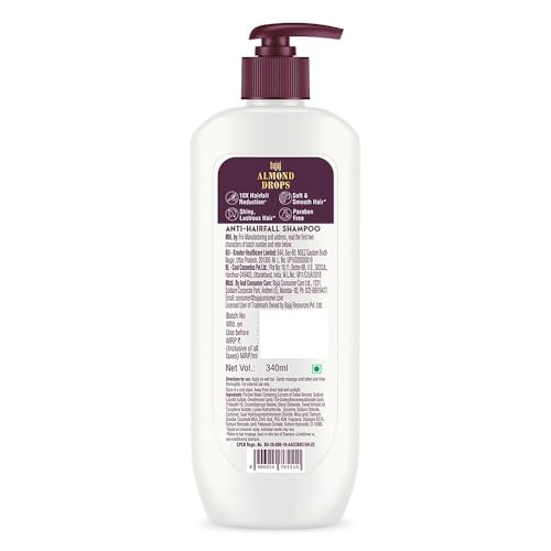 Are you tired of using different shampoos and remedies to solve your hairfall problem? We know that feeling confident despite continuous hairfall & thinning of hair can be a daunting task. Therefore, we bring to you the new Bajaj Almond Drops Anti Hairfall shampoo for women and men that not only reduces hairfall by 10x^ but also nourishes your hair to give you locks of love. It contains superfoods like Almond Oil & Vitamin E that are known for their nourishing properties and works to improve the quality of your hair by also adding lustre and shine*. If used in addition to our Bajaj Almond Drops Anti hairfall conditioner, it even helps in reducing frizz. So, it’s time you say BYE BYE hairfall! To use: Apply on wet hair. Gently massage until lather and rinse thoroughly. ^Refers to hair breakage, basis in-vitro test conducted in July 2023, of Shampoo+Conditioner vs non-conditioning shampoo. *Based on consumer study conducted in May 2023. Individual results may vary.