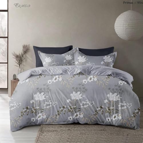 BSB HOME 100% Cotton Feel Double Bed Bedsheet Set | 144 TC Soft & Breathable | Grey and White Flower Print with 2 Pillow Covers | Wrinkle Free | for Bedroom (90 x 90 Inches)