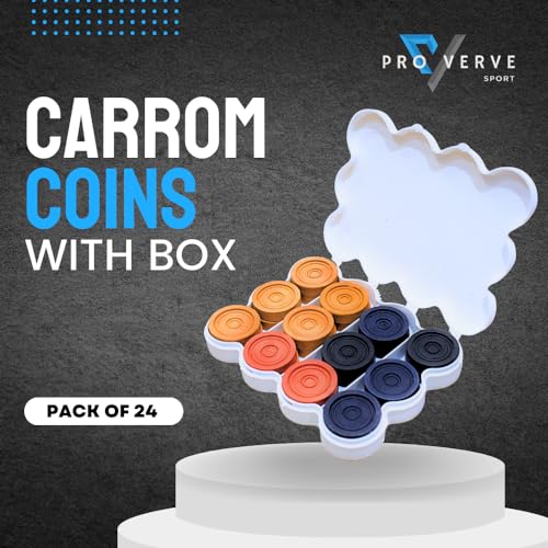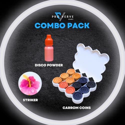 Carrom Board Coins Combo Box with Striker | 8mm Plastic Carrom Coin for Kids & Adults in Wooden Look | Carrom Board Accessories, Floral Printed Striker with Disco Powder (Set of 24 Coins)