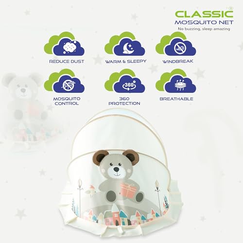 Classic Mosquito Net for Baby | Teddy Bear Print | Bottomless Net for Infants, for Safe & Easy Use | Ensures Your Baby’s Safe Sleep | 98cmX55cmX50cm (0 to 24 Months) – Cream