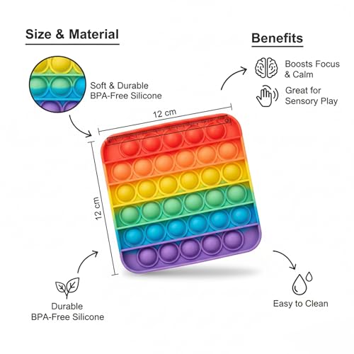 ✅ Sensory Playtime Fun – This colourful push-pop bubble toy is perfect for kids who love tactile play. Just press, pop, and repeat for endless entertainment and sensory satisfaction.
