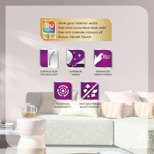 Dulux Velvet Touch Diamond Glo is a super premium quality, highly durable and washable emulsion paint with a best in class high sheen luxury finish. It is the only super premium interior emulsion that brings alive the smooth touch of Velvet and glo of Diamonds on the walls. Uniquely formulated with Surface slip technology, Diamond Glo has the Best in Class Stain and Water Repellence- better than any other ordinary emulsion. Now with Tru Color (Dura Color Technology), Velvet Touch is made with the finest ingredients and color pigments to deliver intense rich colors and ultra-smooth finish on your walls.