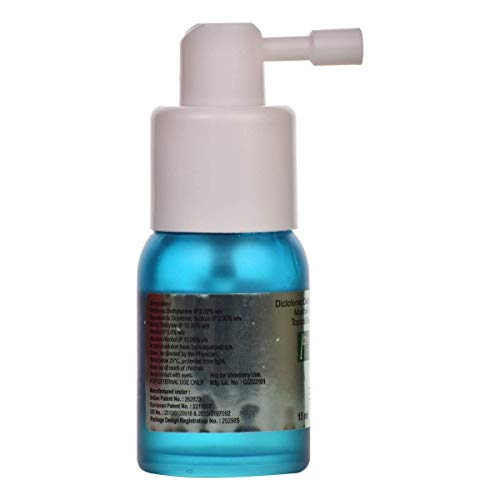 Composition: Diclofenac Diethylamine IP 2.32% w/v Equivalent to Diclofenac Sodium IP 2.00% w/v. Methyl Salicylate IP 10.00% w/v. Menthol IP 5.0% w/v. Absolute Alcohol IP 10.00% v/v. In topical solution base (non aqueous) qs