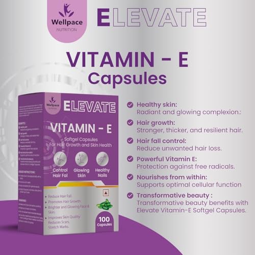 Elevate 400 Vitamin E Capsules For Face And Hair|100% Natural Vitamin E Supplement With Vitamin E Oil|Paraben Free – 50 Capsules
