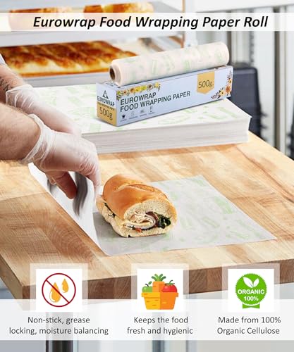 EUROWRAP Food Wrapping Paper 500g – Butter Paper Roll, Greaseproof & Microwave Safe, Roti Wrapping Sheets for Kitchen Use, Ideal for Baking, Packing, and Serving