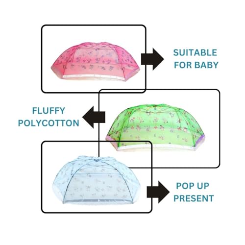 FARMER KING MAT Mosquito net presents mosquito net designed to let your baby have a good night sleep by protecting them from the mosquito bites. This compact mosquito net is extremely light in weight. The net is flexible and can be easily folded like an umbrella. This net has special feature for child lock on the top of Net which keep baby more safe while alone.This mosquito net is portable and can be conveniently carried around while traveling by keeping your baby protected throughout. This Baby mosquito net is perfect for 1 year baby, 2 year baby and 3 year baby. Protection from mosquitoes and flies, lightweight, foldable, portable, perfect for traveling and home use 100% washable and antimicrobial recommended age: 0-30 months (this is a suggestive age, please refer dimensions for more clarity) mosquito net (large) – l. Dimensions: Mosquito Net (Large) – L 120 x B 82 x H 50 cm