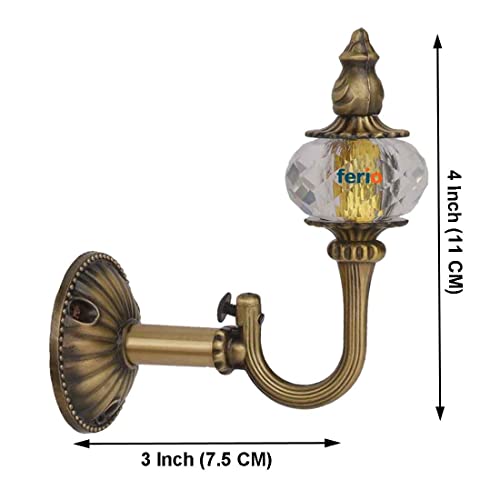 FERIO Zinc with Crystal Diamond Curtain Holders Brackets with Support for Door and Window Fitting for 1 Inch Pocket Finials Designer (Curtain Rod Holder 2 Pcs and Curtain Bracket 2 Pcs)