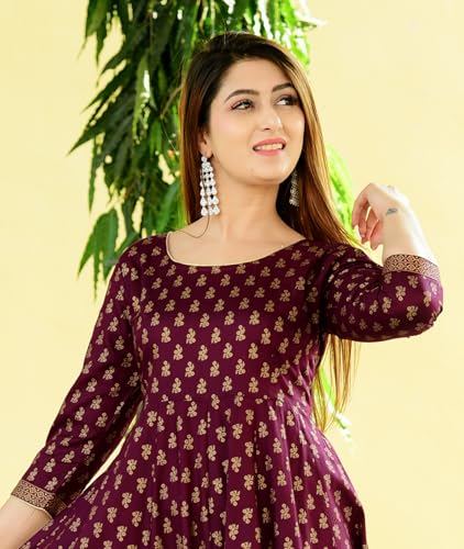 Elevate your ethnic style with this stunning navy blue anarkali kurta adorned with an allover golden floral print. Crafted from premium fabric, this kurta features a flattering A-line silhouette with a flared hemline and elegant 3/4th sleeves adorned with intricate golden embroidery. The boat neckline adds a touch of sophistication, while the ankle-length ensures a graceful drape. Perfect for festive occasions, weddings, or any special event, this kurta exudes timeless elegance and is sure to turn heads. Pair it with matching bottoms or leggings for a complete ethnic ensemble. Please note that hand washing is recommended to preserve the vibrant colours and intricate details. Refer to the size guide for a perfect fit.