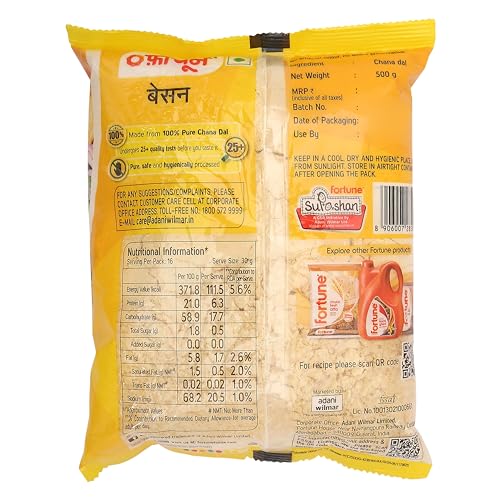 Fortune Besan is hygienic made from 100% chana dal and passes through more than 25 quality checks and processed with advanced grinding technology which retains the flavors and aroma of natural chana dal. Highest grade of chana dal and only standardized colored chana dal passes through our advanced color sortex machine for grinding to give consistency in Fortune Besan leading to the finest taste of any recipe.