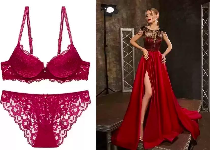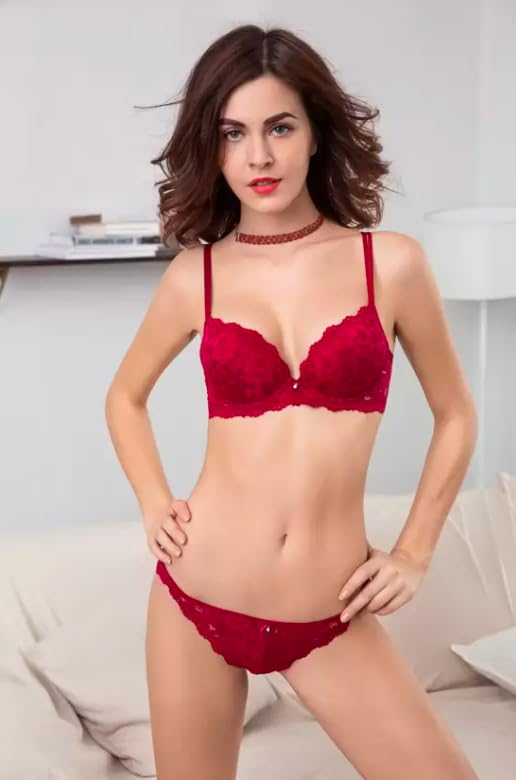 Foxline Women’s Lace Push Up Underwired Solid Lingerie Set