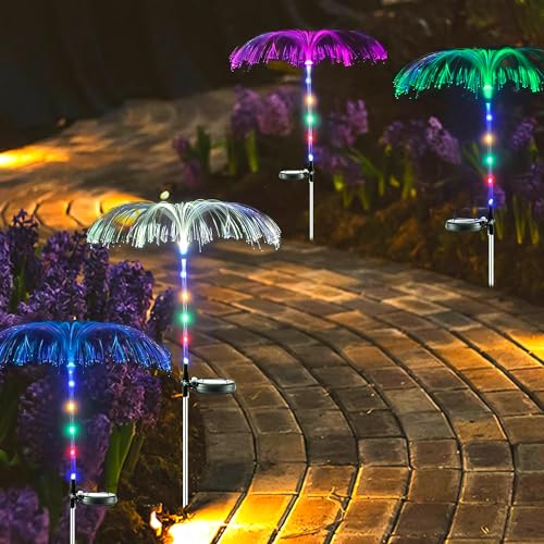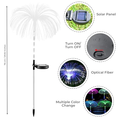 GIGAWATTS GW-903 Solar Jellyfish Garden Light 600mAh Battery BIS Approved Fibre Optic Fountain LED IP65 Waterproof Outdoor Lamp with 2V Panel for Backyards Pathways (1Pc, Multicolor)